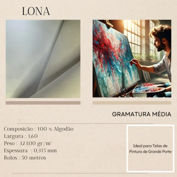 As possibilidades são infinitas! Use nossa lona para criar quadros de todos os tamanhos, esticando-a em uma base resistente. É ideal para reproduções artísticas, decoração e projetos de artesanato. Com uma textura que garante resultados impressionantes, você pode explorar sua criatividade com total confiança.